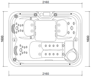Die Größe jedes Sitzes wurde nach europäischen Normen gründlich studiert. Für jeden Sitz des Whirlpools wurde der Bereich so definiert, um die Konturen Ihres Körpers bestens zu kopieren, und damit das Sitzen sowie die Massage komfortabel sind.